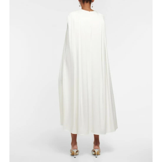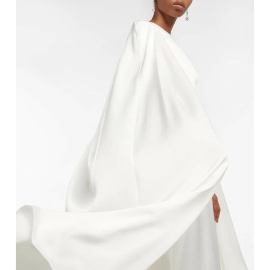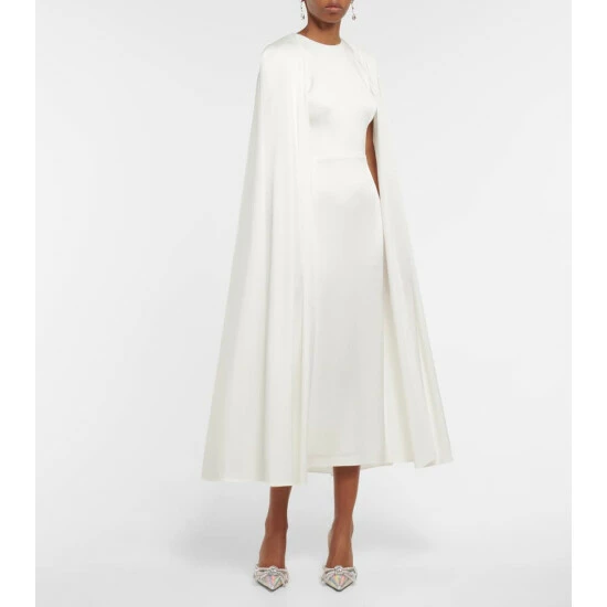 The Beckett dress from Alex Perry features a pleated midi cape that falls just below the knee for a flattering silhouette. Made from shiny satin crΓͺpe, this style is perfect to dazzle at your next gala.