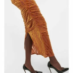 The Brooks dress from Alex Perry will make an elegant addition to your evening-wear edit. It features a strapless bodice, a ruched design, and an all-over burnout print. It comes with opera gloves that frame the midi length silhouette.