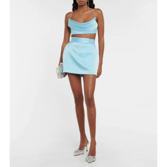 The Carva crop top from Alex Perry plays with structure and drape to achieve an elegant effect. Made from satin crêpe, this cowl-neck design features delicate spaghetti straps and interior boning.