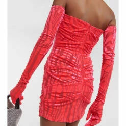 The Colter minidress from Alex Perry is ideal for birthday parties and special dinners alike. The sultry strapless style in a strawberry hue features all-over ruching and comes with matching semi-sheer long gloves.