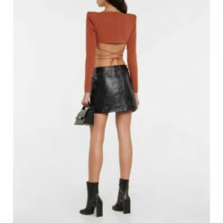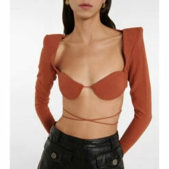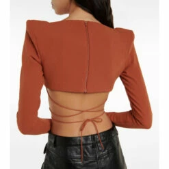 The Dale crêpe top from Alex Perry is the perfect choice for a poolside event. The design resembles a bustier and is elevated with padded shoulders, long sleeves, and delicate cords that wrap around the midriff.