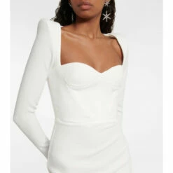 The Grant minidress from Alex Perry is cut from crΓͺpe in a fitted silhouette. It has structured shoulders and a sweetheart neckline.