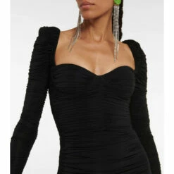Embrace feminine glamour with the Hollis midi dress from Alex Perry. Made from jersey with all-over ruching, it has a sweetheart neckline, puffed shoulders and zipped sleeves.