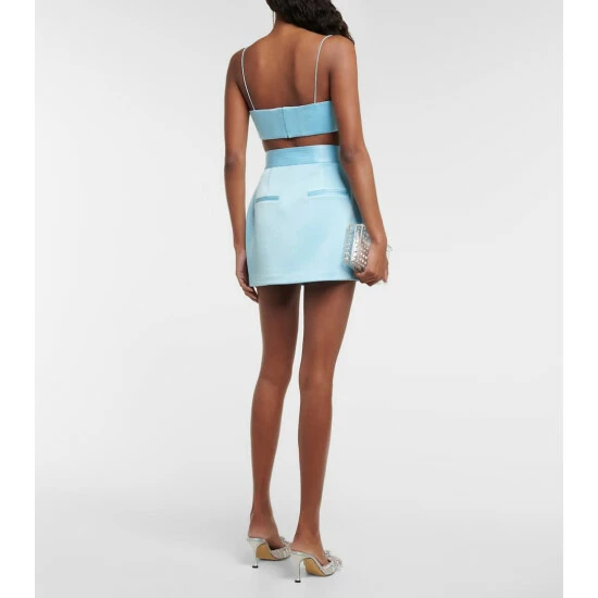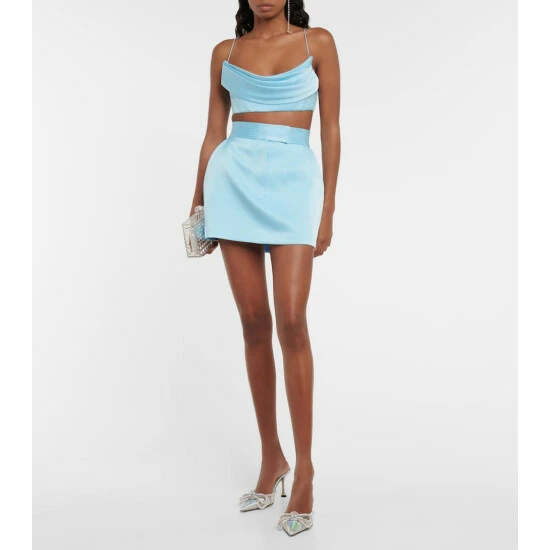 Alex Perryβs Lark miniskirt is made from satin-finished crΓͺpe, perfect for a dazzling party-ready look. The high-rise style has a slim fit and features a textured waistband with a concealed button front.