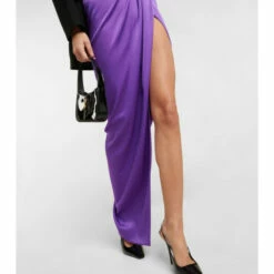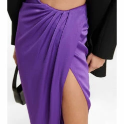 The Ridley low-rise maxi skirt from Alex Perry accentuates the feminine form in a luxurious style. Made from a lustrous satin crêpe elegantly draped to create a high split, mirrored by a dipped waistline.
