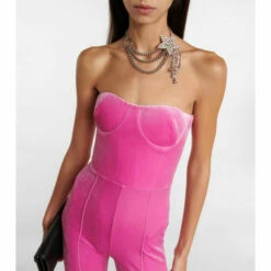 Turn heads in this vibrant strapless jumpsuit from Alex Perry. Made from pink velvet, the style has a fitted bustier top and has a second skin fit.