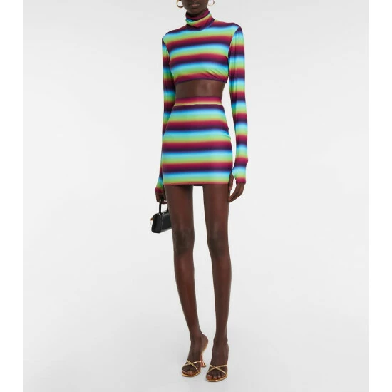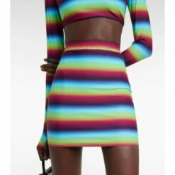 Add energy to your between-seasons edit with this colorful miniskirt from Alex Perry. This form-fitting striped design is made from comfortable stretch crΓͺpe and can be paired with the matching top.
