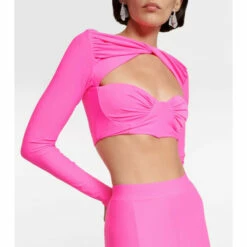 This crop top from Alex Perry is made from jersey for a tight fit. It has a twisted neck, cutout front, and a sweetheart-inspired bustline finished with ruching.