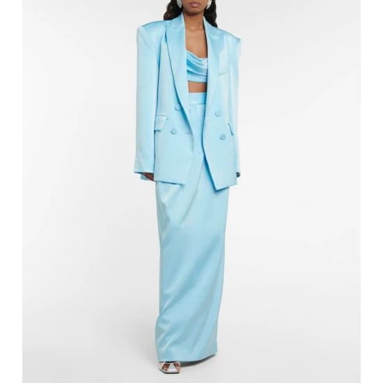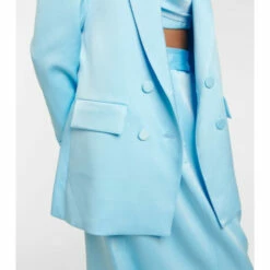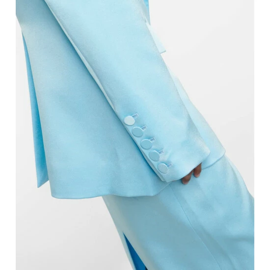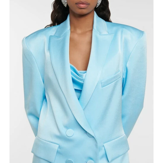 Bring a striking finish to your evening looks with the Wells blazer from Alex Perry. Made from satin crêpe with a metallic sheen, the double-breasted style in blue has a boyfriend fit and same-fabric buttons.
