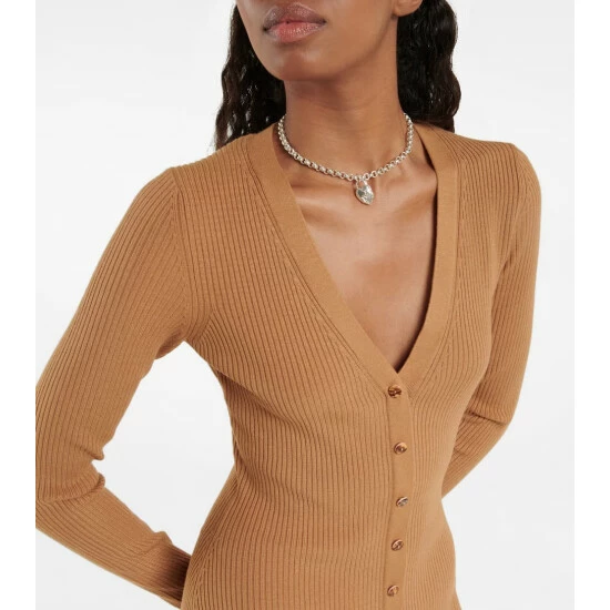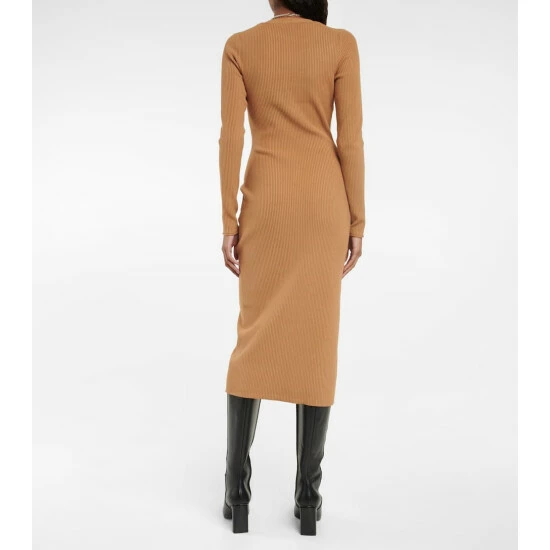 The Arika midi dress from Veronica Beard is the perfect desk-to-dinner piece. The ribbed-knit style has a figure-hugging silhouette with a V-neckline and a buttoned front.