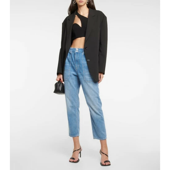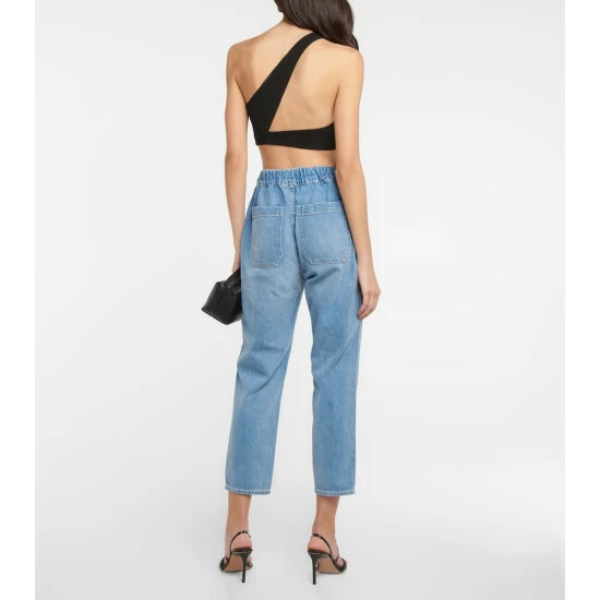 Sitting at a high-rise waist with functional deep pockets, Veronica Beard’s Arya jeans have slim legs and are made from pure cotton denim in a faded wash.