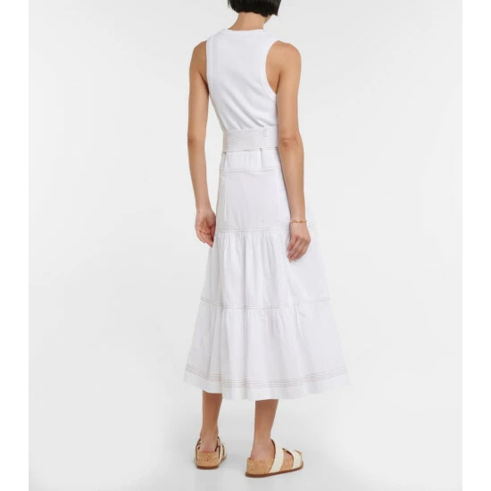 Update your Summer edit with the Austyn midi dress from Veronica Beard. Made from stretchy cotton, it has a self-tie waist and a tiered skirt.