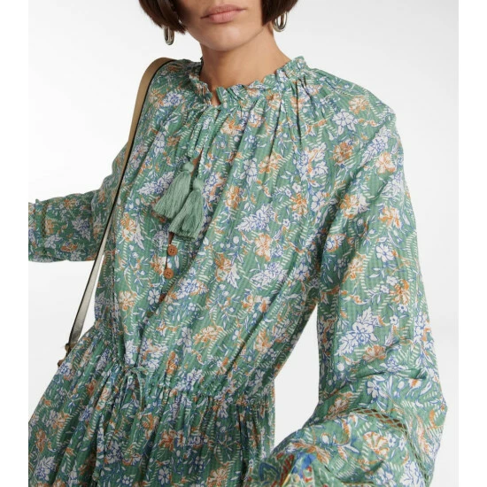 Prepare for languid summer days with the Danica floral minidress from Veronica Beard. It’s made from a cotton blend with bohemian tassels at the frilled neck and drawstring waist.
