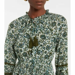 Prepare for languid summer days with the Danica minidress from Veronica Beard. It’s made from a cotton-blend with bohemian tassels at the frilled neck and drawstring waist.