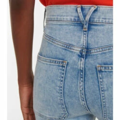 The Florence jeans from Veronica Beard are made in the USA from a premium Italian denim that’s fused with stretch. They have a high-rise waist, patch pockets, and flared legs.