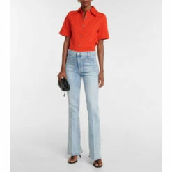 The Florence jeans from Veronica Beard are made in the USA from a premium Italian denim that’s fused with stretch. They have a high-rise waist, patch pockets, and flared legs.