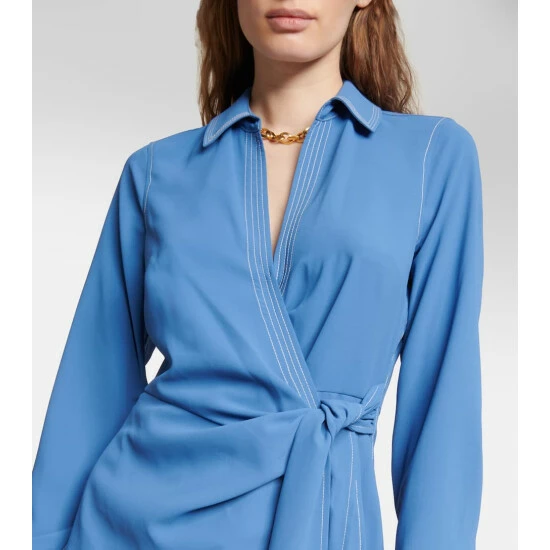 Opt for the Lavella mini dress from Veronica Beard for an effortlessly elegant work or weekend ensemble. Made from matte crรชpe, this style features a smart collar, contrasting stitching, and tie closure.
