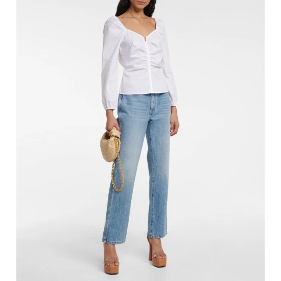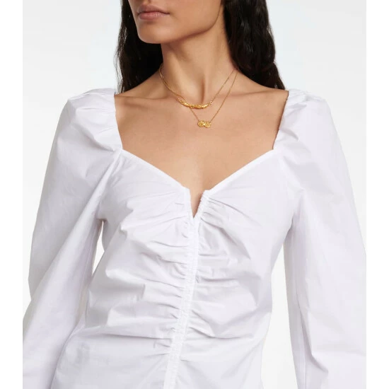 Bring a dash of romance to your everyday looks with this top from Veronica Beard. Made from stretch-fused cotton, the style features puffed sleeves and ruched detailing down the front.