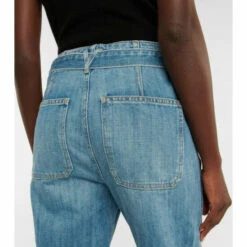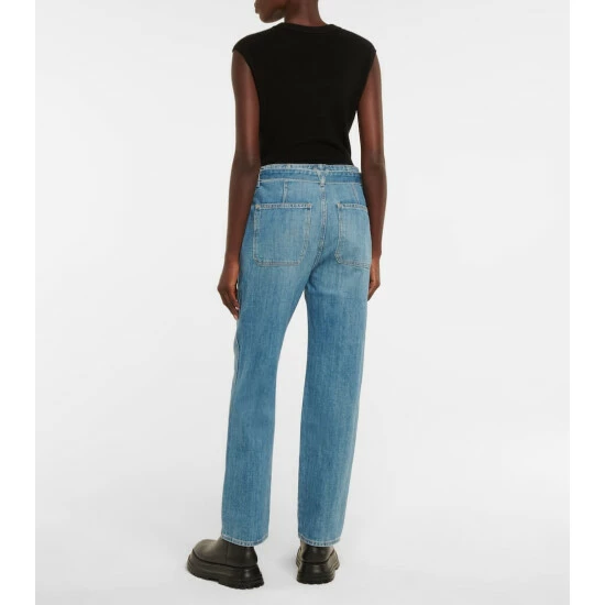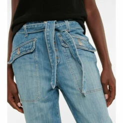 Update your denim edit with Veronica Beard’s Rinley jeans. Made in the USA with cropped, straight legs, they have a buttoned fly, slanted flap pockets and a same-fabric belt at the high waist.