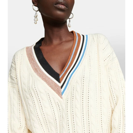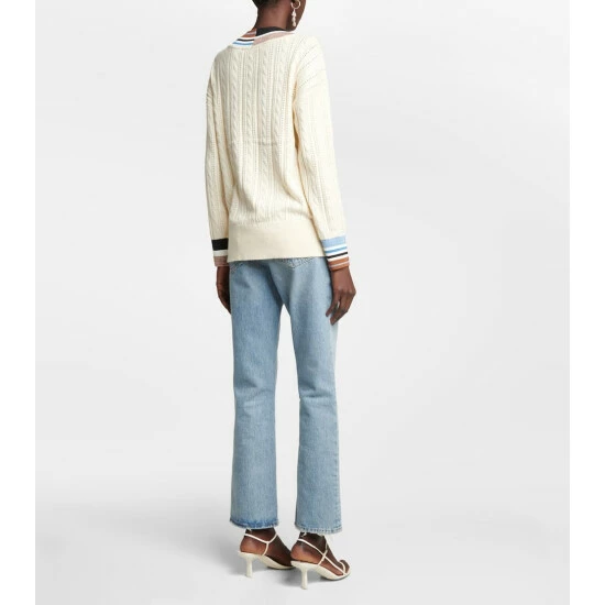 Elevate everyday styling with the Rory sweater from Veronica Beard. The cable-knit design features a multicolor intarsia trim and comes in a relaxed silhouette with an elegant V-neck.